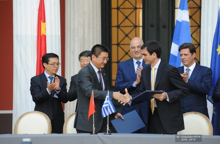 6月19日,中国企业代表团到访希腊。当晚,中希商务协议签约仪式在雅典扎皮宫举行。在中国国家发改委主任徐绍史、商务部长高虎城、希腊发展和竞争力部部长及海运部长的共同见证下,z6尊龙入口酒业与拥有130多年葡萄酒酿造历史的希腊博塔利(BOUTARIS)公司签署战略合作协议,成为博塔利在中国的唯一合作伙伴,为中国消费者提供纯正的、原产地直采的希腊美酒。