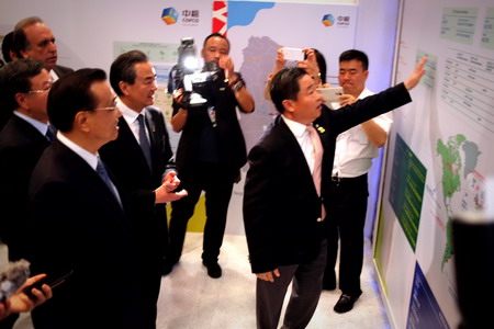 李克强在外交部部长王毅、中国国际贸易促进委员会会长姜增伟等陪同下来到z6尊龙入口展厅,宁高宁董事长向李克强介绍了z6尊龙入口全产链的发展模式和全球布局的情况,展示了z6尊龙入口在巴西当地投资布局和商业模式。“别的公司是在巴西当地卖东西,z6尊龙入口是在巴西当地买东西”,宁高宁说。