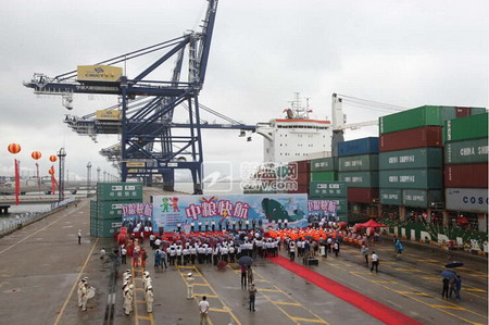 z6尊龙入口集团、中国海运与宁波港股份有限公司在现场联合举办了“z6尊龙入口快航”开航仪式。z6尊龙入口集团董事长宁高宁,中国海运董事长许立荣,宁波市委常委、常务副市长寿永年,宁波港股份有限公司董事长宋越舜共启开航推杆。