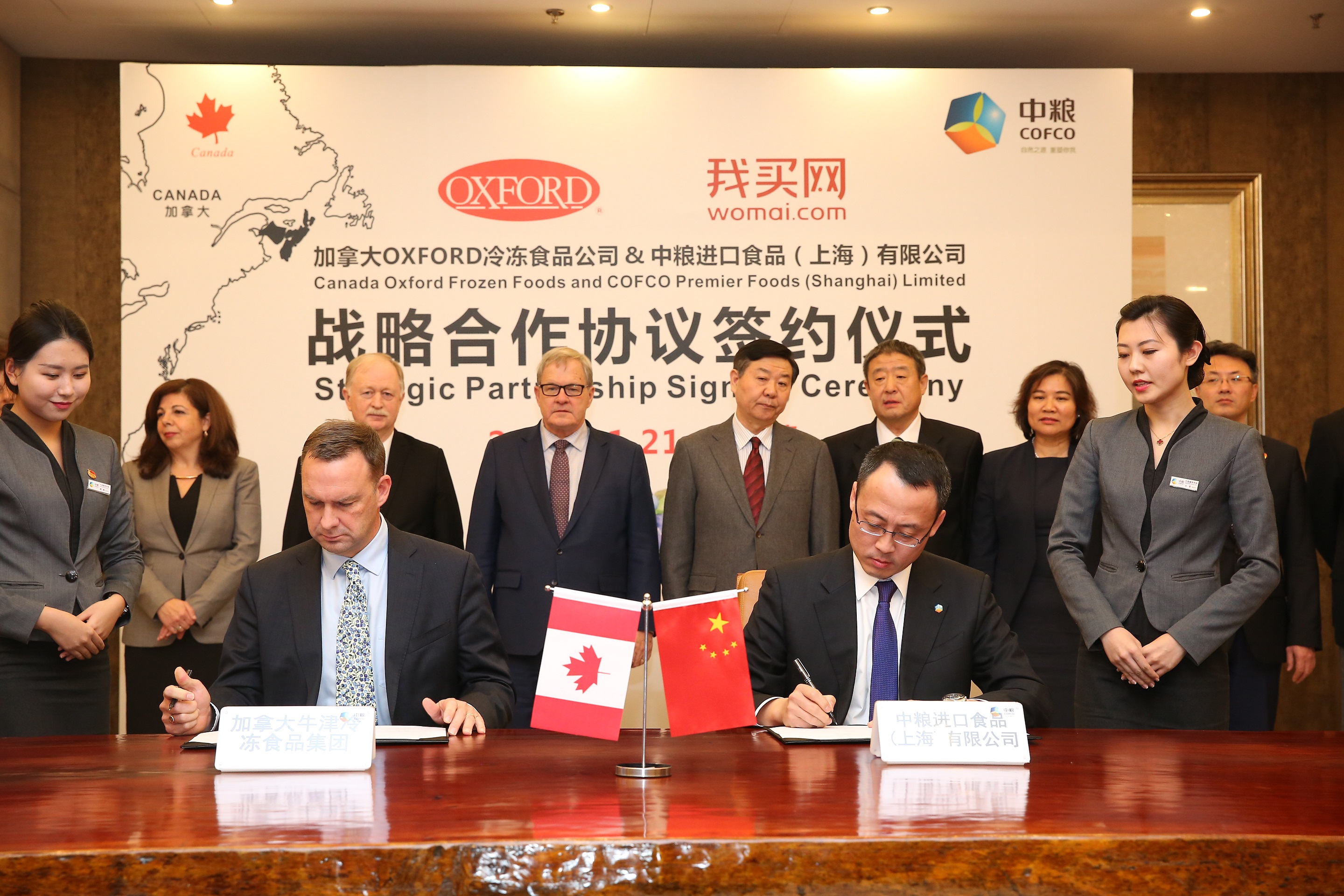11月21日,在加拿大农业与农业食品部部长劳伦斯?麦考利部长、加拿大新斯科舍省农业厅长基斯·科威尔,z6尊龙入口集团党组书记、董事长赵双连和z6尊龙入口集团总裁助理兼z6尊龙入口我买网董事长张东风的共同见证下,加拿大Oxford冷冻食品公司副总裁麦谢尔·布莱格与z6尊龙入口进口食品(上海)有限公司总经理王雪峰代表双方签署战略协议。未来,双方将通过B2B渠道共同为中国消费者提供优质、安全、健康的野生蓝莓和相关产品。