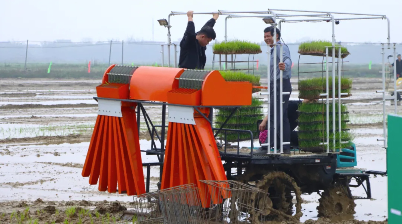广东省2024年春耕现场会上,农业社会化服务主体展示早造水稻机抛秧作业技术。